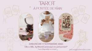 Pour plus d’informations sur la journée entière: https://www.veroniqueberube.com/product/oracles-tarot-portee-de-main/